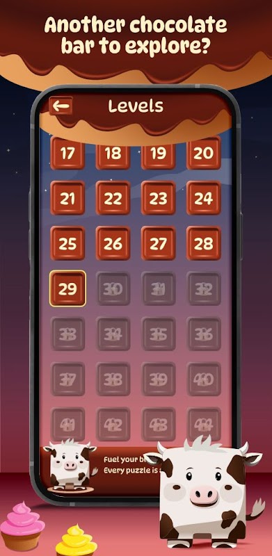 • Unique chocolate-splitting puzzle gameplay