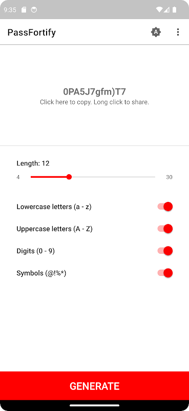 بفضل واجهة المستخدم البديهية، يضمن PassFortify أن إنشاء كلمات مرور قوية يعد تجربة خالية من المتاعب. لا تحتاج إلى أن تكون خبيرًا تقنيًا لإنشاء كلمات مرور آمنة - فالأمر لا يتطلب سوى بضع نقرات.