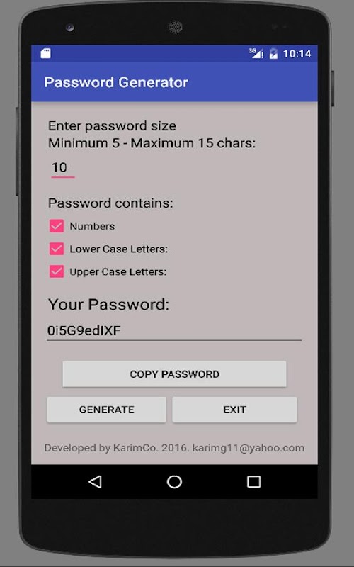 With this app you can generate passwords.