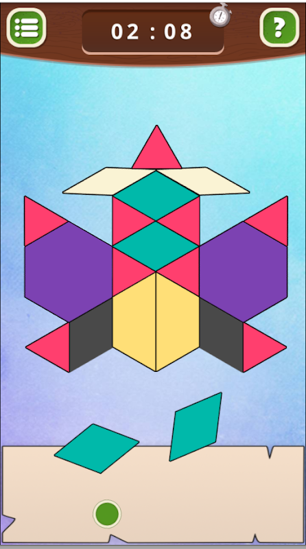 На каждом уровне отображается силуэт узора и набор фигур, вам предстоит подобрать нужную фигуру и указать ей правильный угол. Как только все фигуры будут поставлены на свои места, уровень будет пройден.