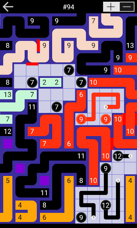 ارسم خطوطًا ساطعة وواضحة من الألوان لإنشاء مسارات تربط بين أزواج من الأرقام الملونة. يجب أن يساوي طول كل مسار الأرقام التي تتصل بها.