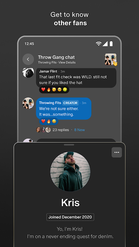 انضم إلى المحادثة في الدردشات الجماعية بالمجتمع، حيث يمكنك التفاعل مباشرة مع منشئي المحتوى والمعجبين الآخرين في مساحة حميمة خارج قسم التعليقات.