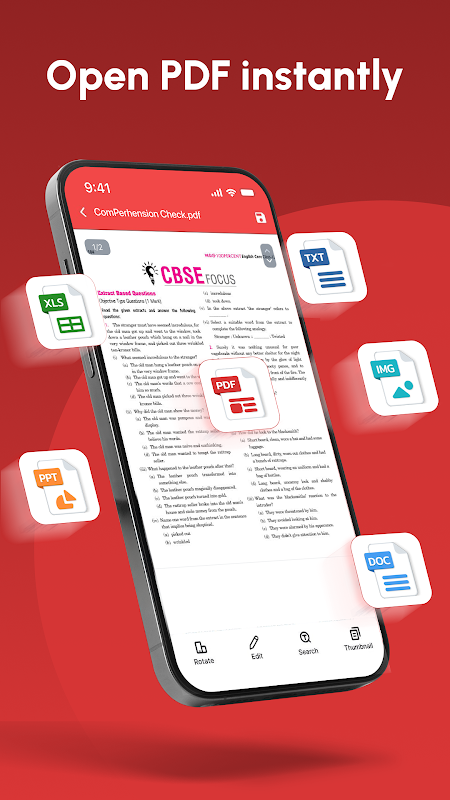 ملفات متنوعة للقراءة: افتح ملفات PDF، وDOC، وXLSX، وPPTX، وJPG، وTXT، وغيرها بسهولة. تطبيق واحد لعرض جميع مستنداتك وإدارتها وتحريرها.