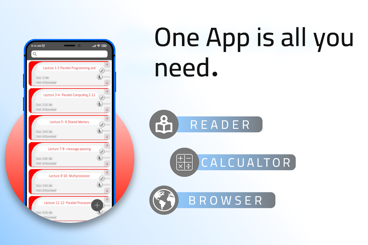 قارئ PDF بسيط مع متصفح ويب وآلة حاسبة علمية مدمجة
