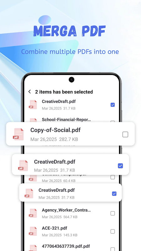 دمج ملفات PDF📑: قم بدمج ملفات PDF متعددة في مستند واحد متماسك ببضع نقرات فقط.