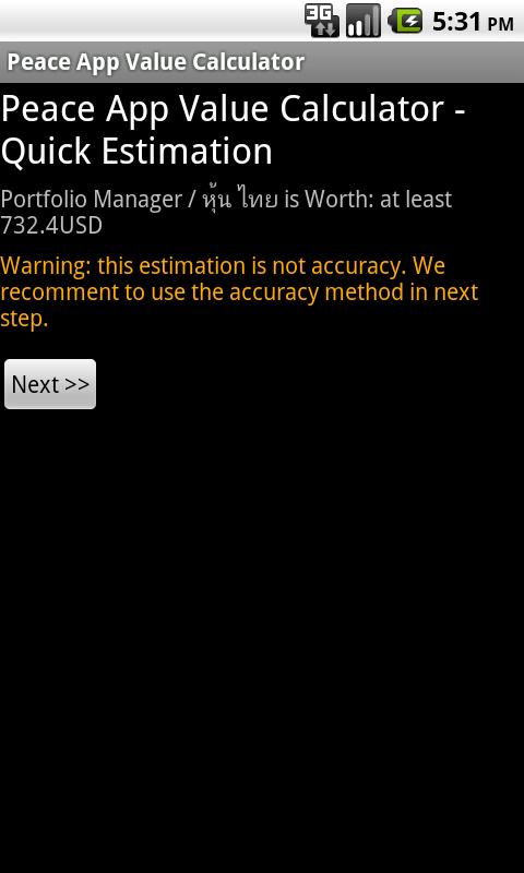 1. تثبيت "السلام التطبيقات القيمة حاسبة" من https://play.google.com/store/apps/details؟id=com.peacedeveloper.PeaceAppValueCalculator