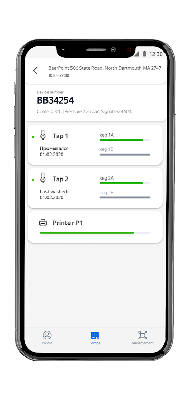 Manage your beer shop effectively with Pegas BeerBox and SmartTap filling devices. The app allows you to get remote technical support, monitor the amount of beverage, carry out maintenance, get system warnings and control your shop in real time.