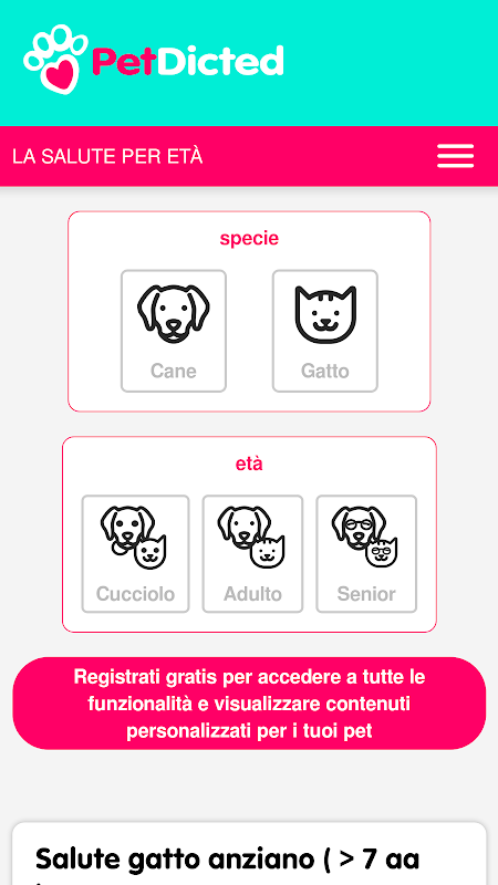 إذا كانت الحالة طارئة، فقد يتعين عليك اتخاذ الإجراءات التي سيقترحها عليك PetDicted من خلال مقاطع فيديو قصيرة. أو استشر قسم الجراحة لفهم الجراحة التي اقترحوها عليك بشكل أفضل، ولماذا يجب إجراؤها، ومتى يتم ذلك، وما يمكن توقعه وما هي المخاطر المحتملة. في قسم "الصحة حسب العمر"، ستتمكن من فهم الخطوات الطبية الموصى بها لكل حيوان أليف ولكل فئة عمرية. تقدم المقالات الافتتاحية، التي يتم نشرها بشكل دوري، محتوى باختصار، مع تفاصيل يمكن أن تحدث فرقًا في حالات الطوارئ.