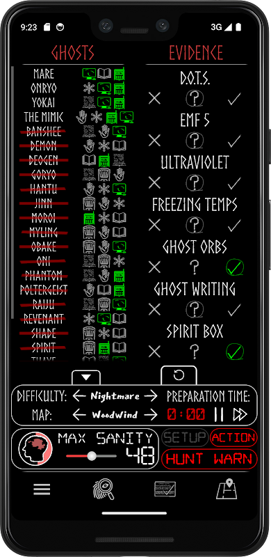 تضييق نطاق أنواع الأشباح المتبقية! تم تحديد الدليل المطلوب لكل شبح بوضوح لمساعدتك في تحديد نوع الدليل المتبقي. اختر وضع الصعوبة، ثم اختر وجود الأدلة! القضاء على أشباح معينة عن طريق تمرير أسمائهم.