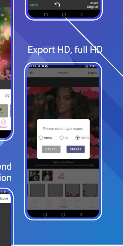 - ليس مثل التطبيقات العادية التي تسمح لك فقط بإنشاء صور ثابتة ، فنحن نسمح لك بدمج صورك مع مقاطع الفيديو مع انتقالات صور احترافية ونابضة بالحياة.