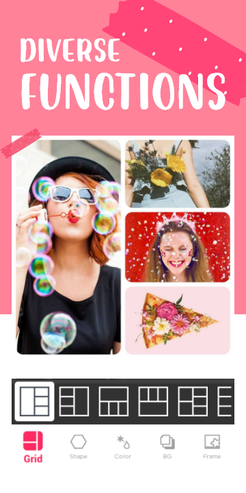 تحتوي "Photo Collage - Pic Frame Maker - Picture Collage" على العديد من إطارات الصور ذات الخلفيات الملونة التي يمكن للمستخدمين إنشاء خلفية الصورة المجمعة بطريقة مختلفة وفريدة من نوعها. سيتم إنشاء الصورة بمظهر أكثر احترافًا وجاذبية.