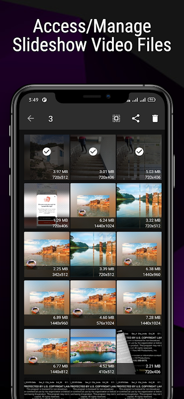 * اختر أي عدد من الصور من المعرض وقم بإنشاء فيديو بالصور