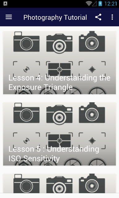 إذا كنت مثل هذه APP، يرجى دعم لنا وصنفه 5 نجوم ✭✭✭✭✭ سيكون لدينا التصوير الفوتوغرافي دورة المبتدئين تساعدك على فهم أساسيات الضوء وكيف عينك على إصلاح الإضاءة. كيفية الحصول على الكاميرا لالتقاط ما تراه العين لإنتاج أفضل الصور. والدروس تساعد أيضا على فهم الكاميرا وكيفية التقاط الصور معها. المذكورة أدناه دورات منتقاة لمساعدتك على البدء. جعل هدف لنفسك متى سوف تنتهي جميع الدروس التصوير الفوتوغرافي. في الأيام الأولى للتصوير الفوتوغرافي، واعتبر عملية التقاط الصور تقدما كبيرا من العلوم. وكانت كاميرات السينما مبكرة بدائية وبسيطة نسبيا للاستخدام (إذا كنت تعرف كيفية تشغيلها). منذ فترة طويلة استبدال الكاميرات الرقمية منذ فيلم والتكنولوجيا في DSLR اليوم ليست قصيرة من المذهل. أعرف أكثر ! ❀❀❀ المسئولية ❀❀❀ جميع المحتويات في هذا التطبيق ليس علامتنا التجارية. نحن فقط الحصول على المحتوى من محرك البحث ومواقع الويب.