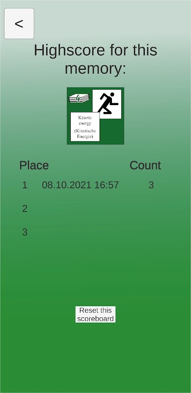 Außerdem hat man Ansporn durch eine Highscore-Liste zu jedem Memory.