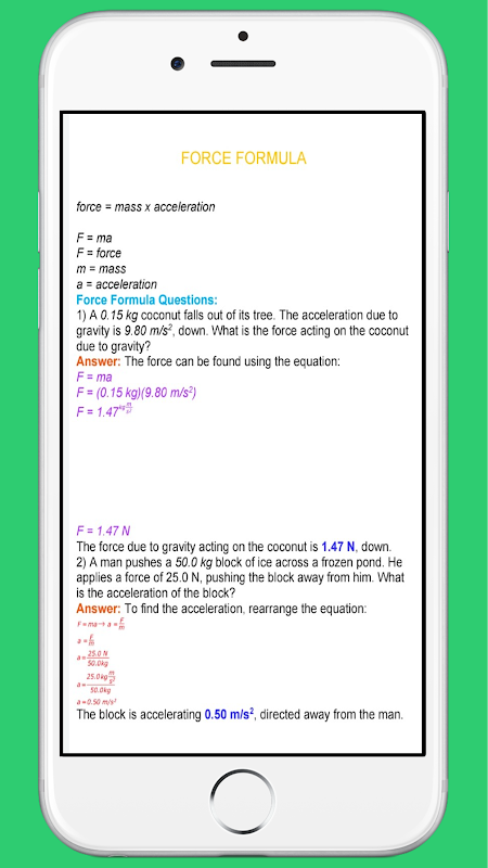 يحتوي التطبيق على صيغ الفيزياء