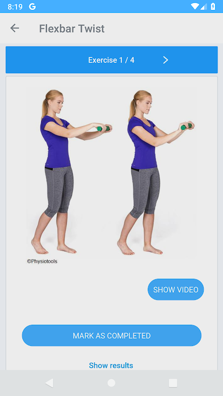Physiotools Trainer يستخدم برنامج تمارين Physiotools ، والذي يحتوي على مجموعة واسعة من التمارين لإعادة التأهيل واللياقة البدنية.