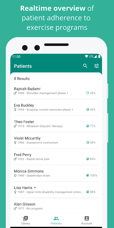 شاهد مقاطع فيديو للتمارين الرياضية ، واعرض التزام مرضاك وأرسل رسائل إلى مرضاك.