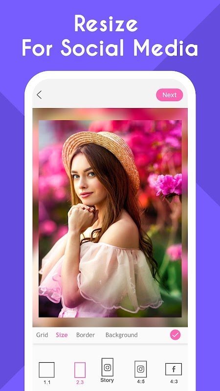 ● Customize photo grid size, border and background.