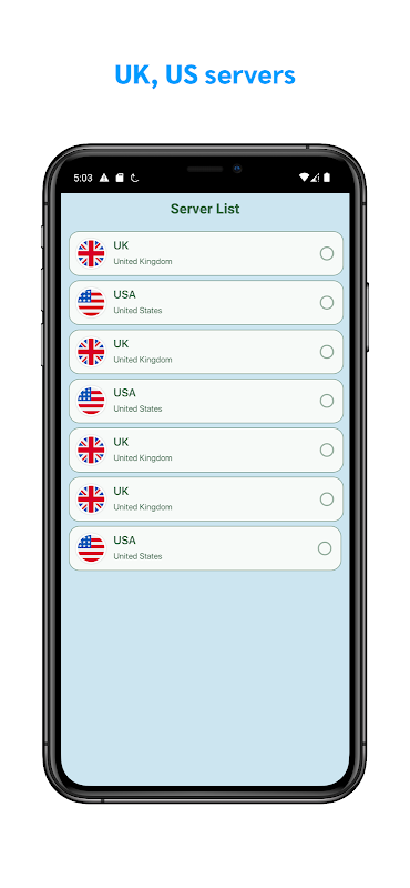 - واجهة سهلة الاستخدام: سهلة الاستخدام مع اختيار الخادم الذكي.