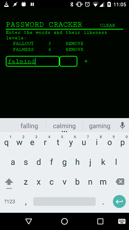 Simple tool to help hack terminals in the vast wasteland. Enter the words you have tried and their likeness levels. The text of each successive word will be green if it is possible to be the password, yellow if it is too short, and red if it is impossible for it to be the password. For best results, pick your first word at random and then make sure each successive word you try is possible (green) to continue.