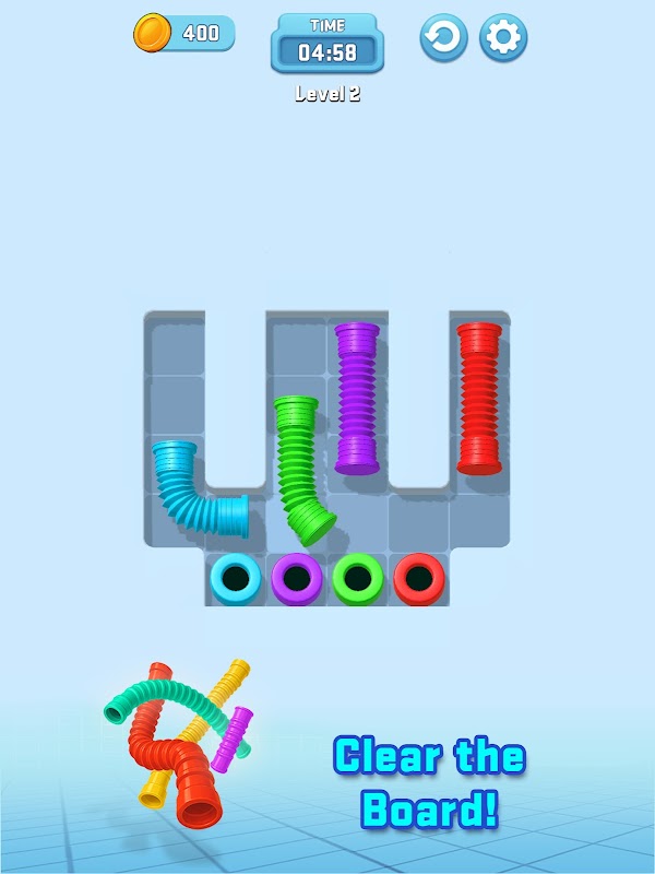 في لعبة Pipe Jam 3D، مهمتك بسيطة: حرك الأنابيب، وطابق ألوانها، وقم بتوجيهها عبر البوابات الصحيحة!