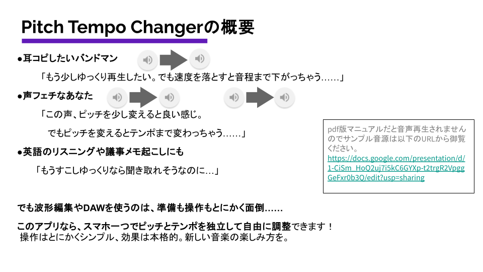 عن Pitch Tempo Changer:高さ速さを個別に変更