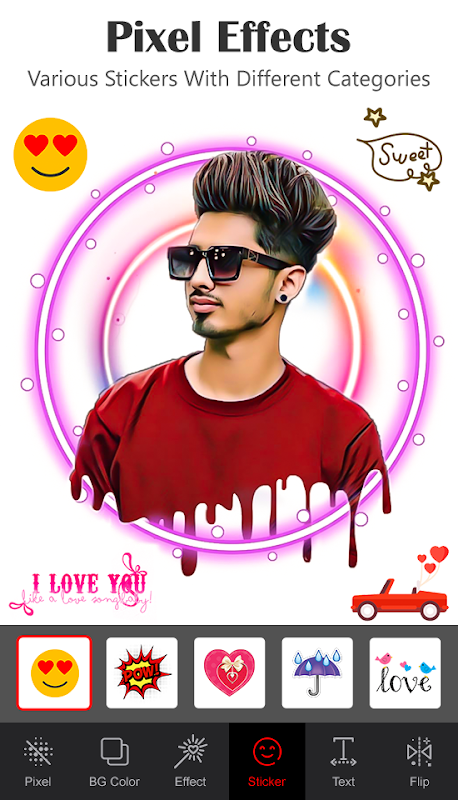 - Add different Stickers on your photo.