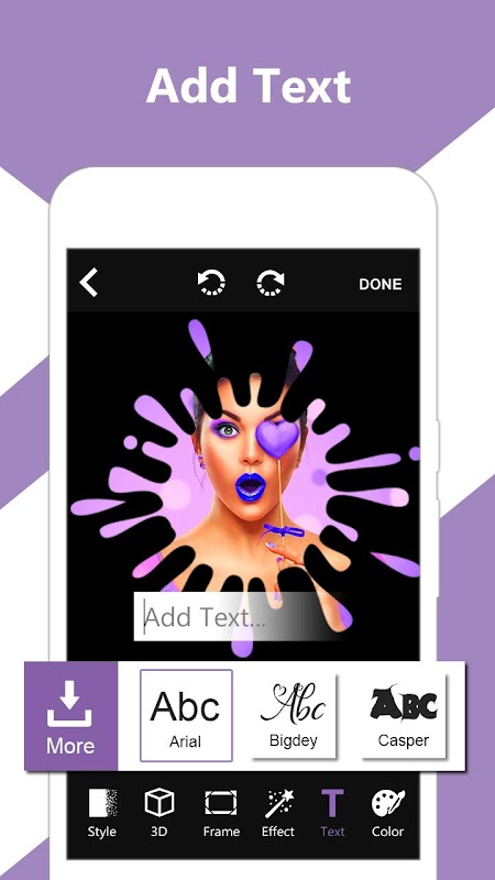Add text with different font style, color, pattern on your photo.