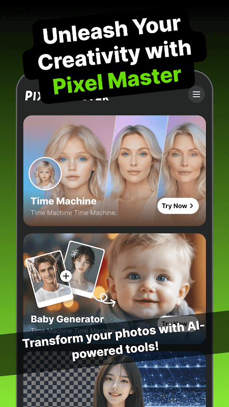أطلق العنان لقوة الذكاء الاصطناعي لتحسين صورك وتحويلها بشكل لم يسبق له مثيل! PixelMaster هو تطبيق متقدم لتحرير الصور مدعوم بالذكاء الاصطناعي مصمم لإضفاء الحيوية على خيالك. سواء كنت تريد أن ترى كيف ستبدو في المراحل العمرية المختلفة، أو التنبؤ بمظهر طفلك المستقبلي، أو إزالة الخلفيات دون عناء، فإن PixelMaster يلبي احتياجاتك.
