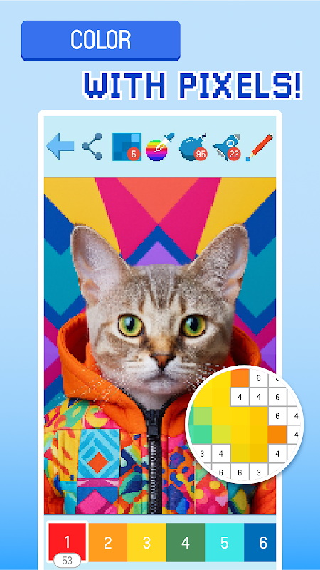 Pixyfy هو وسيلة ممتازة لقضاء الوقت وإنشاء الفن الخاص بك. يمكنك الاسترخاء مع الألعاب الرقمية وتهدئة وتطوير إبداعك وخيالك من خلال صفحات رائعة. ملون برقم أي لون بكسل تريد إنشاء فن مدهش! هو مثل ألعاب تلوين ماندالا. وقتا ممتعا مع لوحة الرقم.