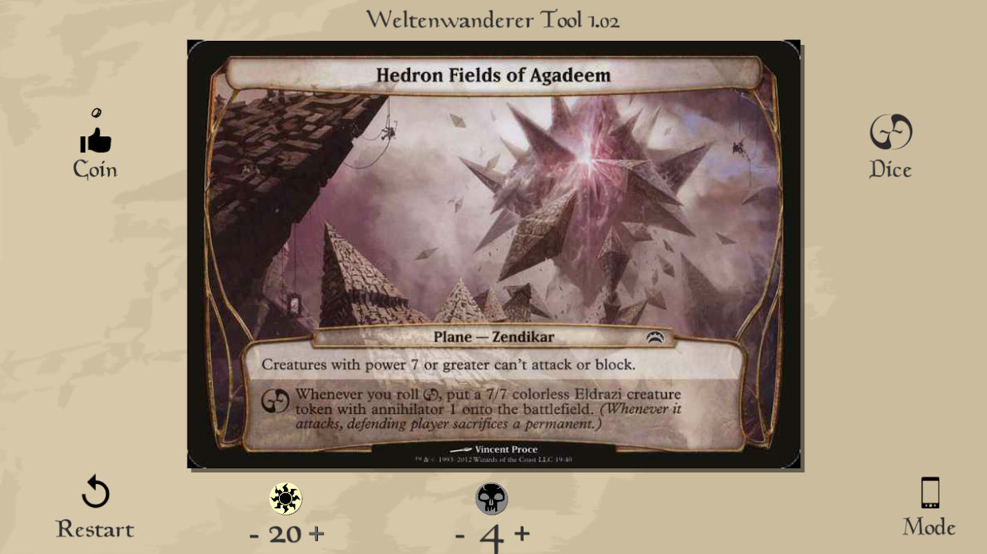 Planechase هو متعة خاصة للألعاب متعددة اللاعبين، ولكن بطاقات الطائرة لم تعد متوفرة. هذا هو السبب في جعل هذا التطبيق.