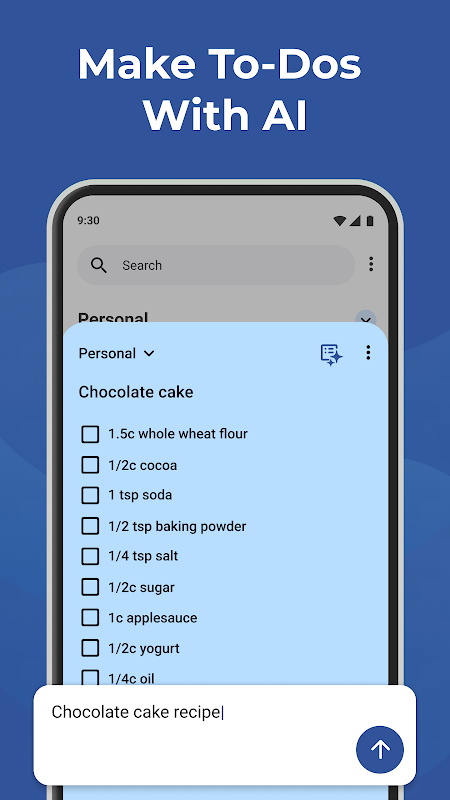 يُساعدك الذكاء الاصطناعي في Planndu على تحويل أفكارك إلى قوائم مهام قابلة للتنفيذ. أنشئ قوائم مهام فورية لأهدافك وعاداتك.