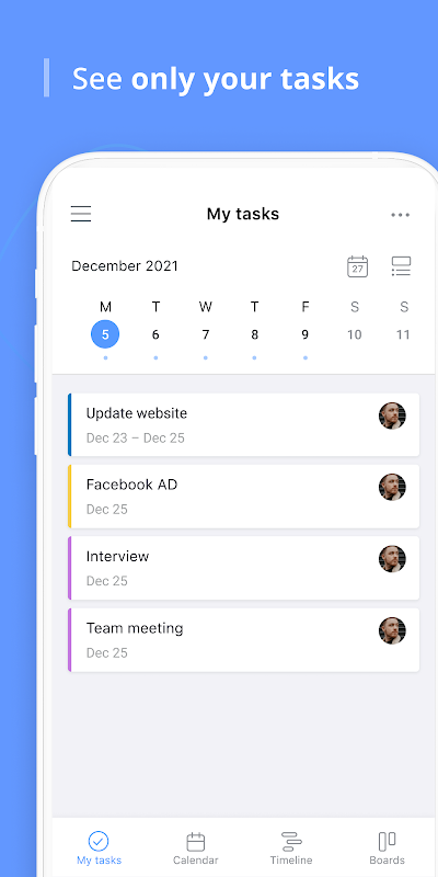 قم بتحسين تعاون الفريق من خلال نظرة عامة واضحة على المواعيد النهائية القادمة لإبقاء فريقك على اطلاع.