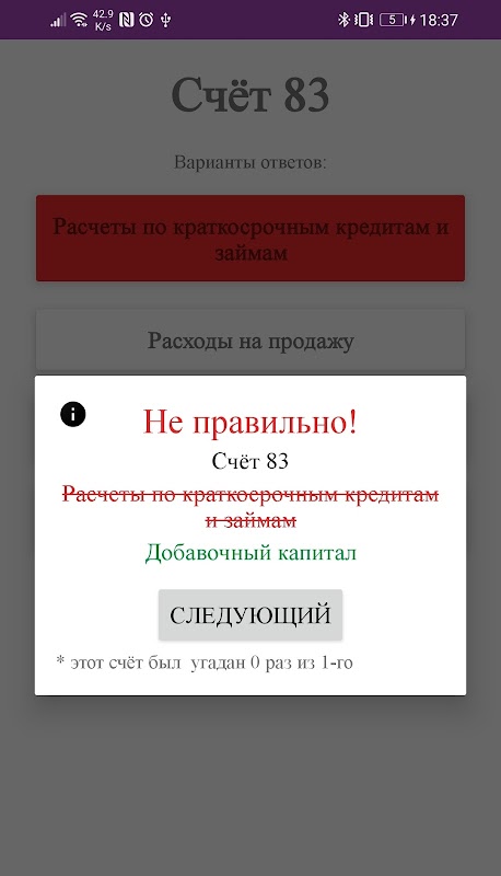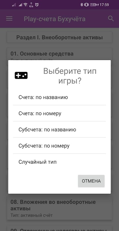 سيساعدك على الوصول السريع إلى جميع الحسابات وحفظها باستخدام لعبة بسيطة: يتم عرض الحساب أو رقم الحساب الفرعي ، وأربعة خيارات للإجابة ، أو العكس ، يعرض وصف الحساب وتحتاج إلى تحديد رقمه. كل ما تبقى هو اتخاذ القرار الصحيح!