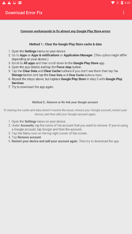 Play Store Download Error Code Fix was a tool that show you the Play store download error reason and help you to fix the error code.