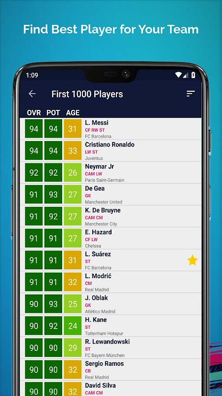 يتم تحديث قاعدة بيانات التطبيق باستمرار مع لعبة FIFA 19. إذا كنت ترغب في متابعة أحدث بيانات لعبة FIFA 19 ، فاتبع تحديثات تطبيقنا.