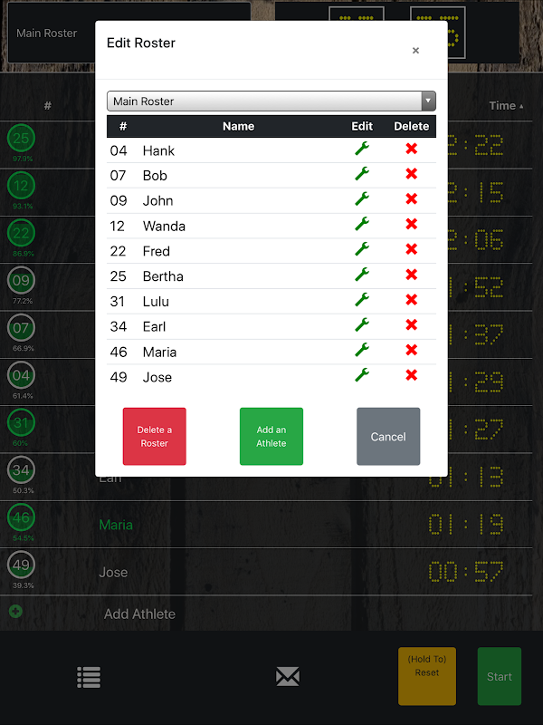 للوقت الذي يقوم فيه اللاعبون بالنقر فوق الدائرة المجاورة لاسمهم حتى يصبح لونه أخضر ثم يبدأ ساعة اللعبة. يمكنك تشغيل لاعبين داخل أو خارج أثناء تشغيل الساعة (مثل الألعاب الرياضية مثل كرة القدم والهوكي) ، أو يمكنك إيقاف وقت اللعب ومشغلي الألعاب الرياضية الفرعية مثل كرة السلة.