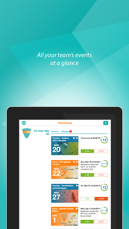 إدارة فريق الرياضة الترفيهية لم تكن أسهل. مع لمحة واحدة سترى آخر التحديثات والحضور للأحداث فريقك. لدينا التطبيق منح وشعبية يجلب الإخطارات مباشرة إلى الهاتف الذكي الخاص بك.