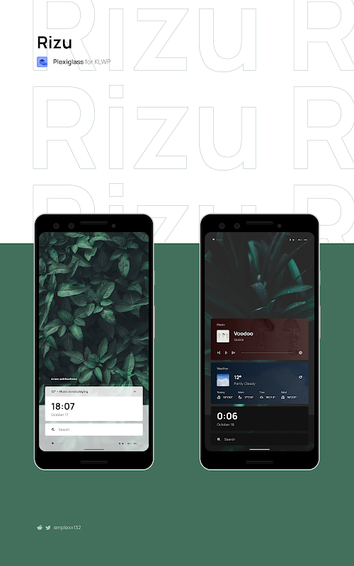 Plexiglass offers a set of pretty and functional homescreen setups for KLWP. The themes in this pack are optimized for all aspect ratios.