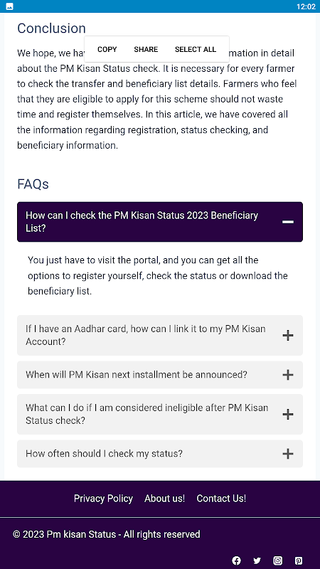 الإصدارات القديمة لـ PM KISAAN STATUS