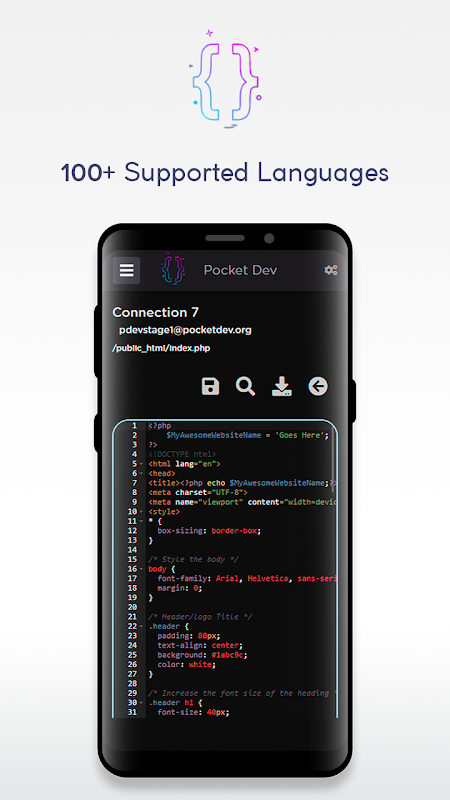 قم بتحرير HTML و CSS و PHP والمزيد. تم تصميم Pocket Dev لمساعدتك في البرمجة بأكثر من 100 لغة ، ويقدم تجربة محرر كود قياسية مع ميزات مثل تمييز بناء الجملة وأرقام الخطوط ودعم مفتاح الاختصار. يعمل محرر السحابة لدينا على تبسيط وتقديم أكبر زيادة في الكفاءة للجهاز الحالي.