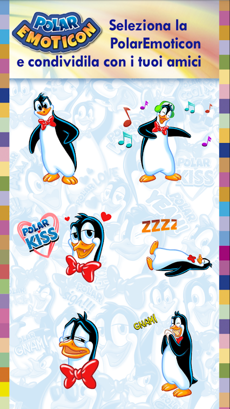 Divertiti a sorprendere in chat tutti i tuoi polar amici con le buffe e colorate espressioni di Mister Polaretto. Scegli quella che più ti rappresenta e movimenta tutte le tue conversazioni mandando tutte le gif animate che vuoi.