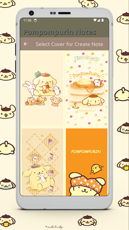 تم تزيين التطبيق بصور Pompompurin المبهجة، مما يخلق بيئة تدوين ملاحظات مبهجة وممتعة.