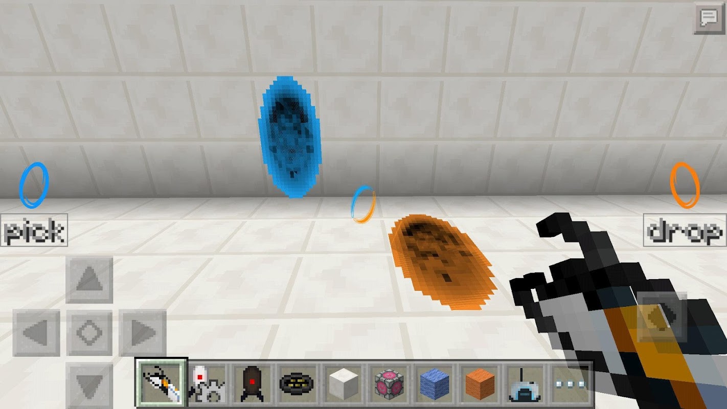 يضيف Portal 2 Mod (سابقًا Portal Gun) العديد من الميزات كما هو موجود في ألعاب Portal ذات الشعبية الأولى من منصة ألغاز إلى Minecraft Pocket Edition. تتضمن عناصر اللعب ميزات مثل PortalGuns لوضع البوابات ، و GravityGun التي يمكن استخدامها لكل من الكتل والغوغاء والكثير من الأدوات الأنيقة الأخرى.