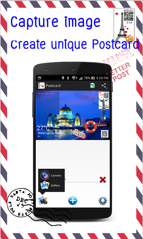 Handy application for traveler instant share your existing moment to your friends with postcard.