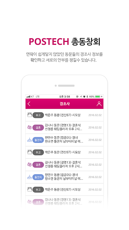 [قناة الاتصال لخريجي POSTECH]ويوفر القدرة على البحث عن الخريجين بالإضافة إلى أخبار وخريجين المدرسة ، والاتصال بهم.