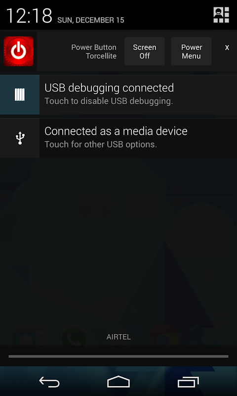تطبيق mimicks بك زر الطاقة لسهولة الوصول على الشاشة. يمكنك تعيين القطعة، العائمة النافذة، اختصارات أو الإعلام (قرص العسل وما فوق فقط) لتحويل قبالة الشاشة وفتح القائمة السلطة.