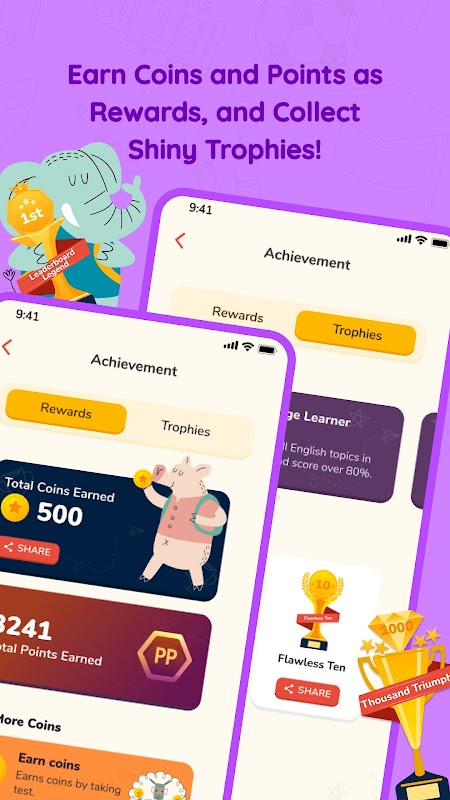 حافظ على حماسك مع التحديات والمكافآت داخل التطبيق وأدوات التعلم التفاعلية التي تجعل الدراسة ممتعة، حتى للامتحانات الصعبة مثل أولمبياد الرياضيات، وأولمبياد العلوم، وأولمبياد اللغة الإنجليزية، وأولمبياد الحاسوب.