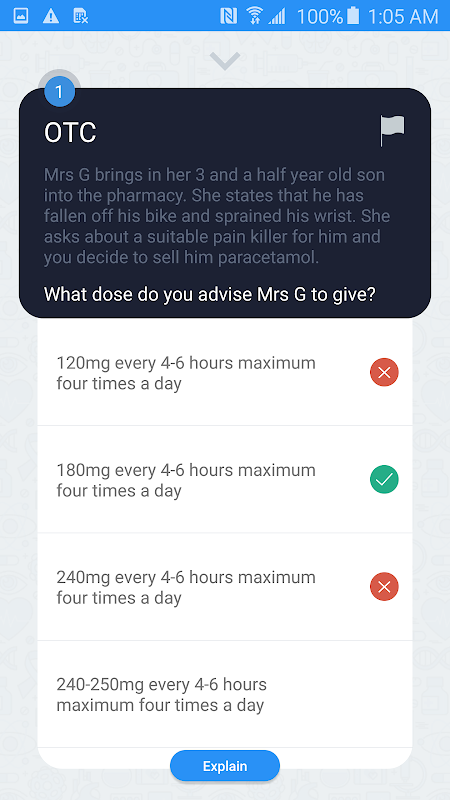 ما عليك سوى اختيار القسم الذي ترغب في العمل عليه والبدء فورًا في التحقق من مستوى معرفتك مباشرةً من هاتفك. سيقوم تطبيق Pre Reg Master بتصحيحك فورًا إذا قمت بتقديم إجابة خاطئة وقدم لك شرحًا. يمكنك مراقبة تقدمك في كل قسم لأن التطبيق يعرض عدد الأسئلة التي تمت الإجابة عليها بشكل صحيح لكل يوم من أيام الأسبوع.