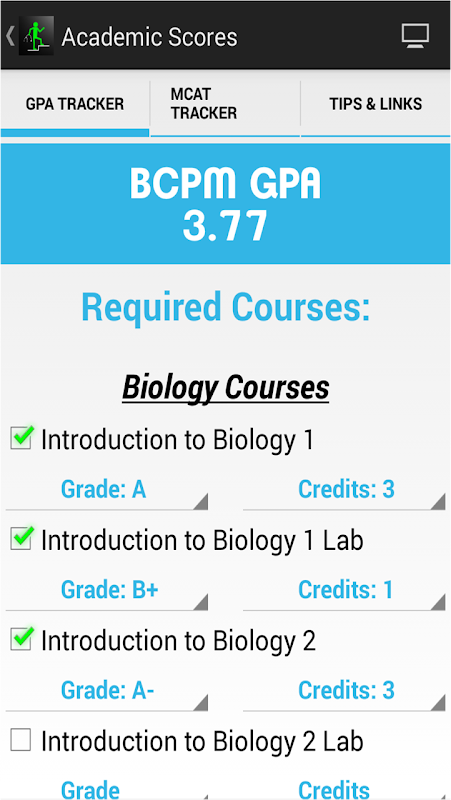 3. SCIENCE (BCPM) GPA CALCULATOR AND TRACKER - Allows you to easily track your required pre-med classes, additional science classes, and automatically calculates your AMCAS BCPM (Science) GPA for you.